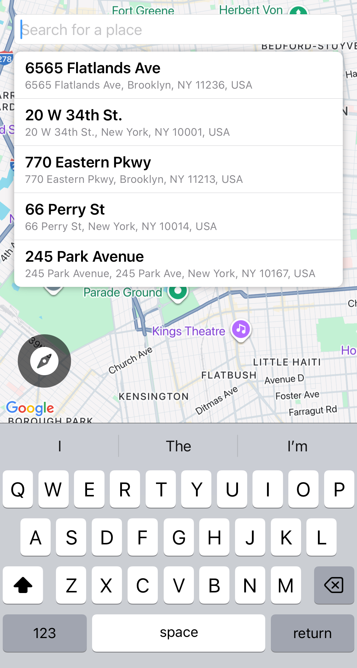 1. Set a destination using the search bar on the map view
