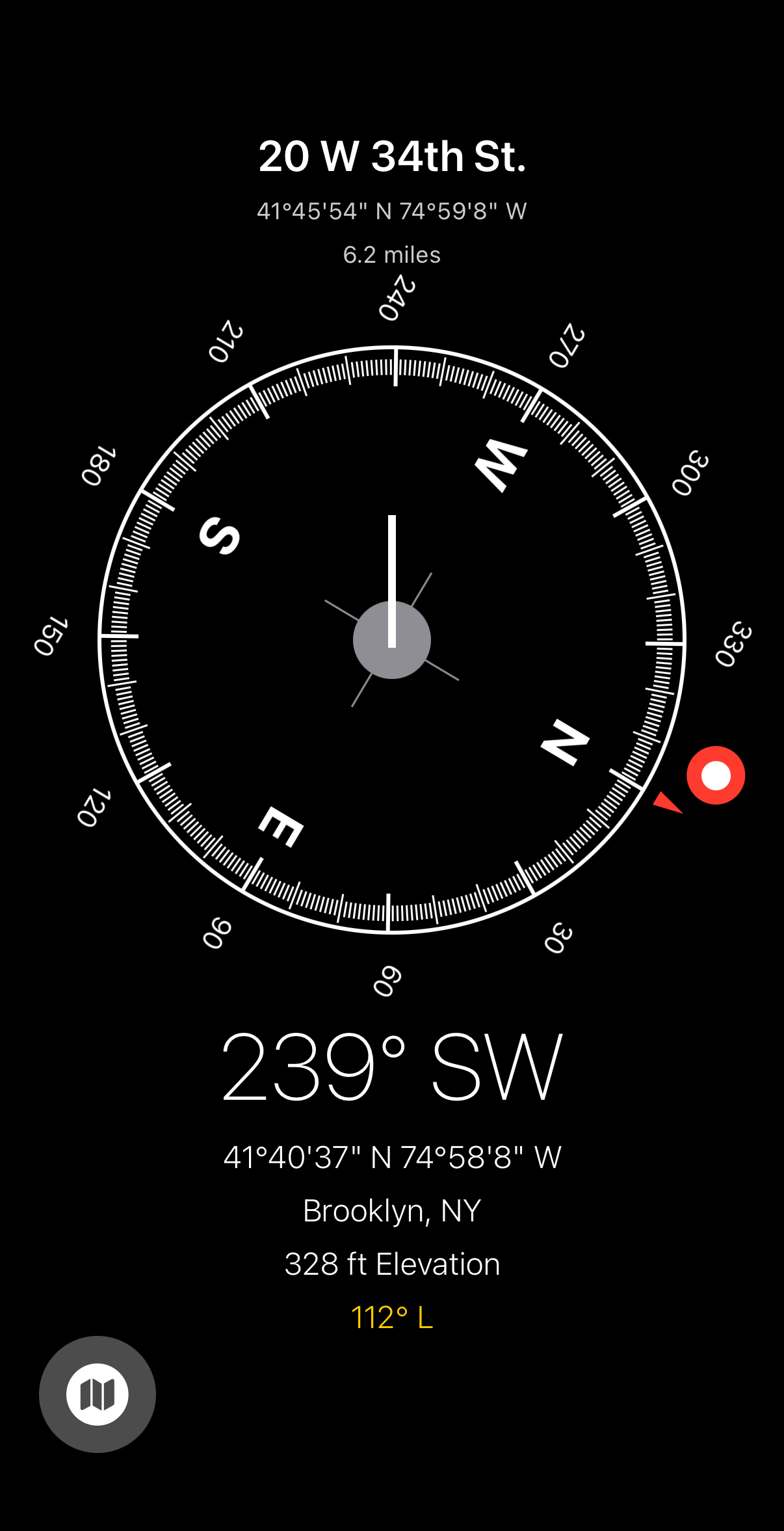 4. The waypoint pin rotates around the compass ring to always point toward your destination